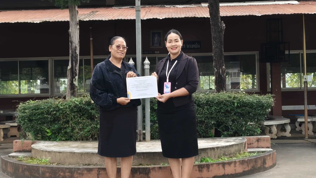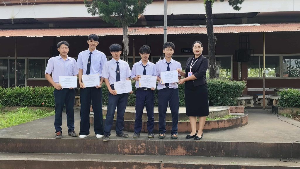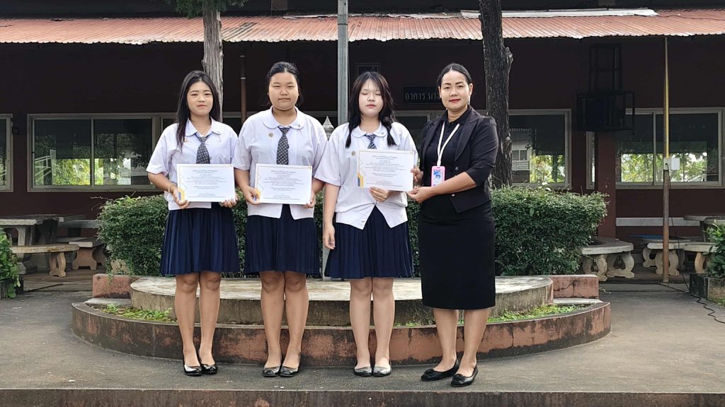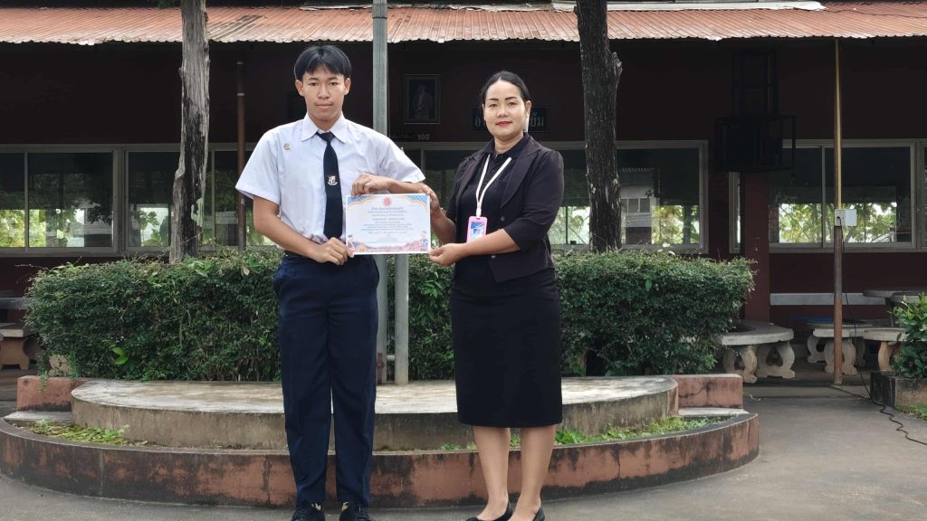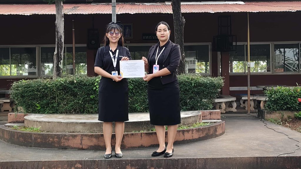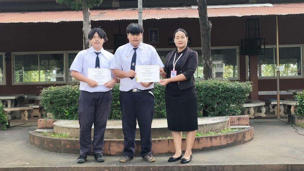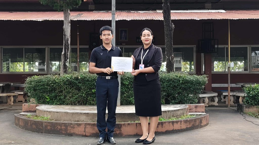 นางสาวมณีกานต์ คำแสน ผู้อำนวยการ มอบหมายให้ นางสาวทิพย์วลัย ใหม่วงส์ รองผู้อำนวยการ เป็นตัวแทนมอบเกียรติบัตรให้กับนักศึกษา และคุณครูผู้ควบคุม ที่ได้รับรางวัลการแข่งขันทักษะวิชาชีพและทักษะพื้นฐาน ระดับจังหวัดพะเยา ปีการศึกษา 2568